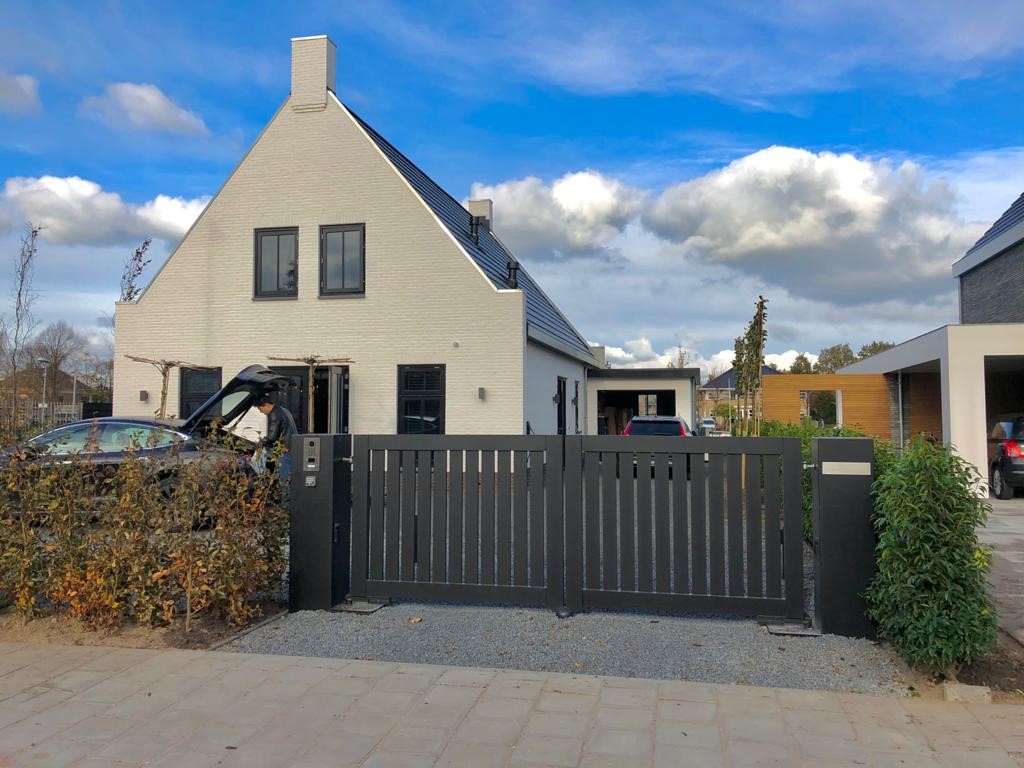 Onlangs deze mooie complete dubbele aluminium poort mogen installeren. Door zelf de zuilen te maken is het mogelijk om hierin een brievenbus, sturingskast, en intercom te verwerken. Deze poort is tevens voorzien van grondaandrijving waarvan de bakken mee gepoedercoat zijn om een nog chiquer resultaat te krijgen. Heeft u ook interesse in een complete geautomatiseerde poort? Klikt u dan hier.